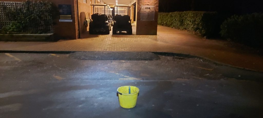 16mm of rain yesterday, on top of frozen ground means we are squidgy and puddly while the water can't drain away. 18 Temporary Greens remain in play.