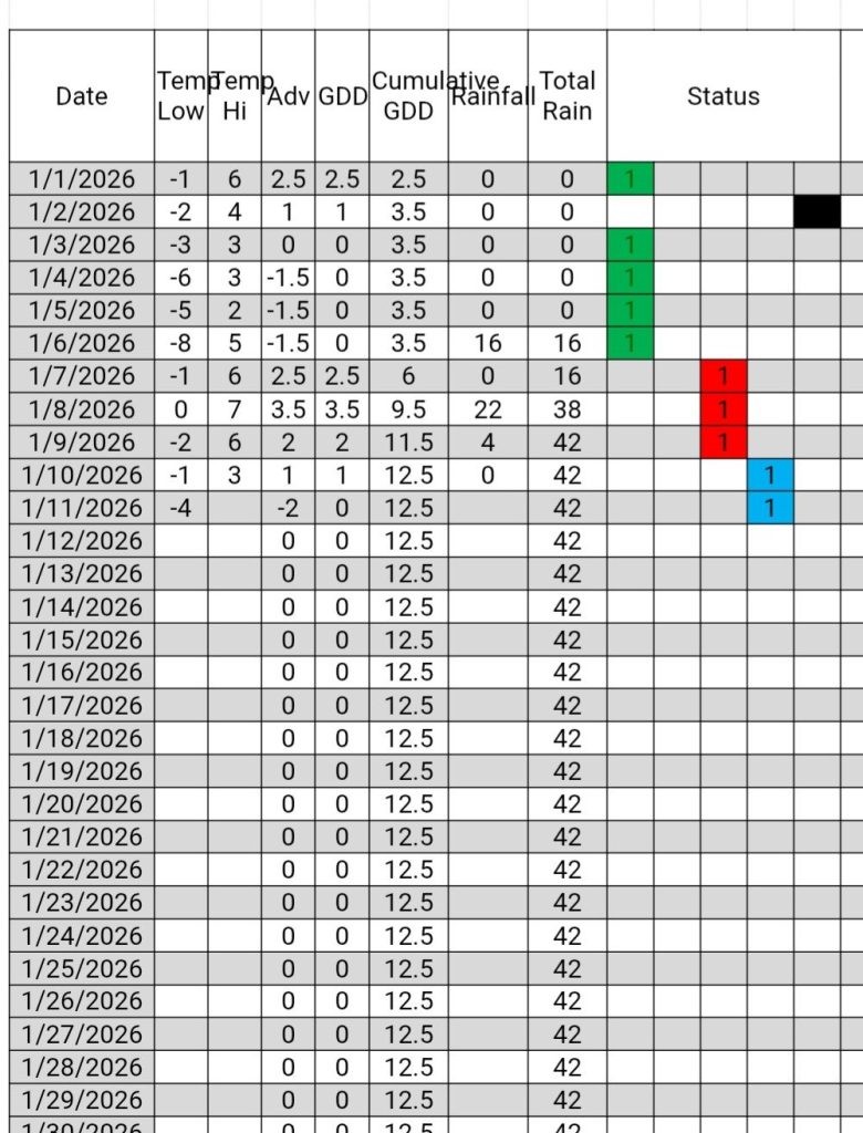 The below picture shows how cold it has been at nights and even how low the day time Temperatures have been.
