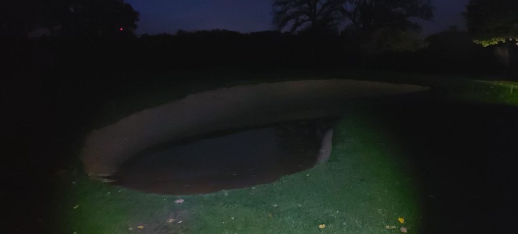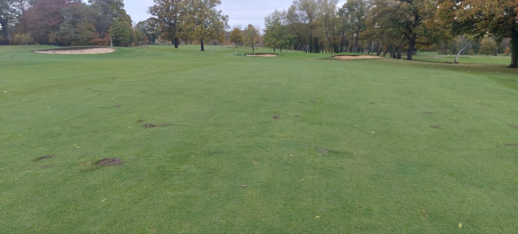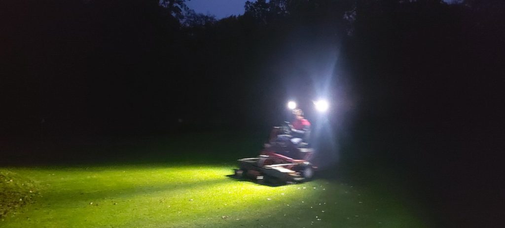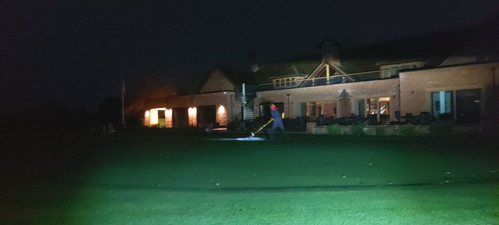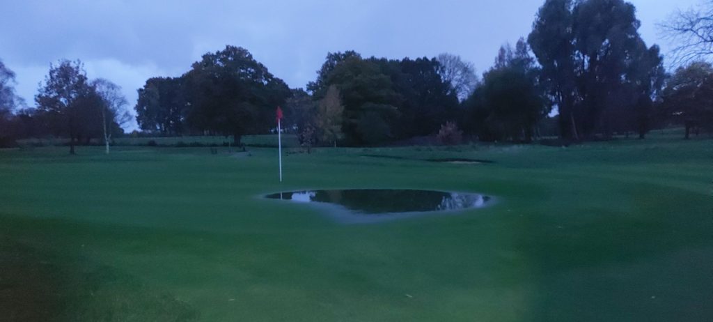 28mm of Rain… so no mechanical process to the Greens today. Dew Removal, Water removal and Leaf Clearance.