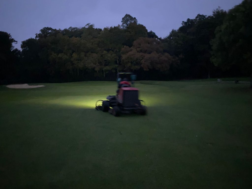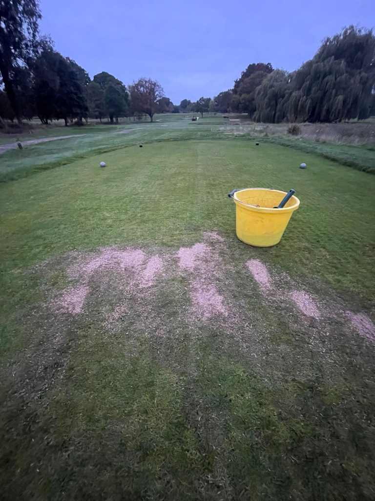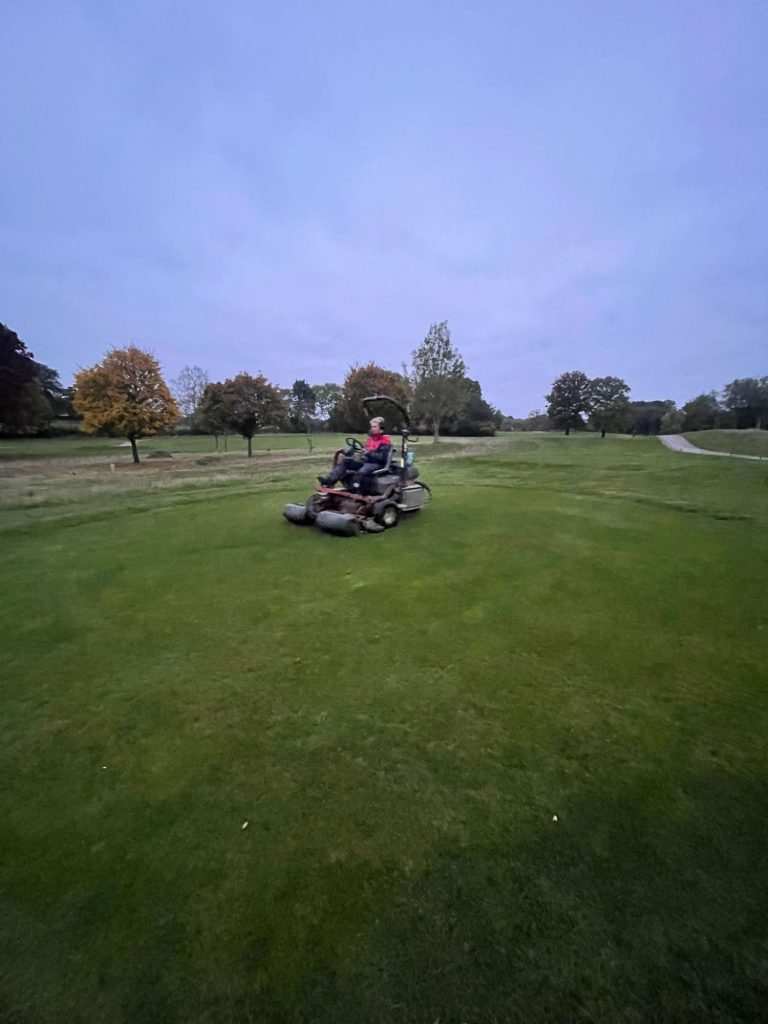 Greens getting their first application of a “Turf Hardener” mix to keep them happy through the Autumn/Winter. Some Acid, Mg, Ca, Phosphite, PGR & Surfactant on the leaf this morning.
