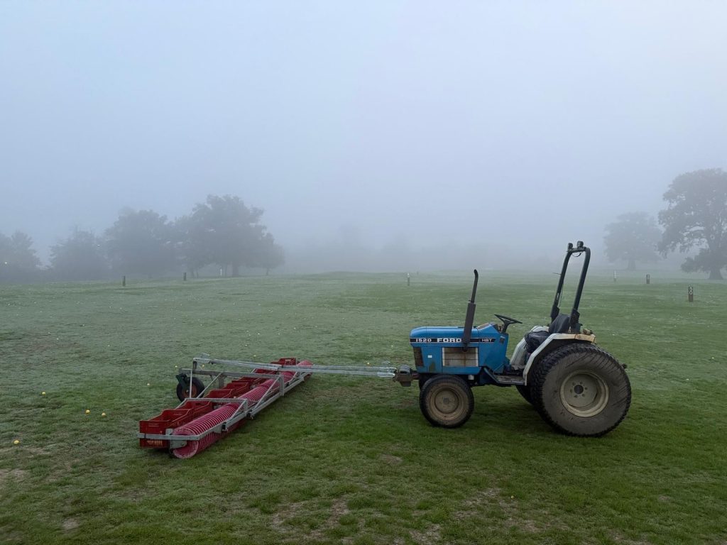 Range closed until 8am due to a breakdown with the ball picker. Resulting in picking with the tractor with no cage for protection for the staff from golf balls.