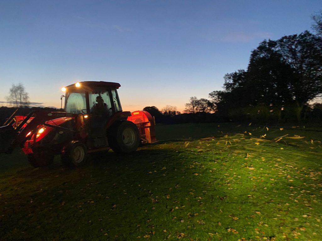Tractor Blower out here making easy work of the pesky leaves. So fortunate that now the Course behaves well with surface water that we can use this large Blower more, rather than back packs like previous years.