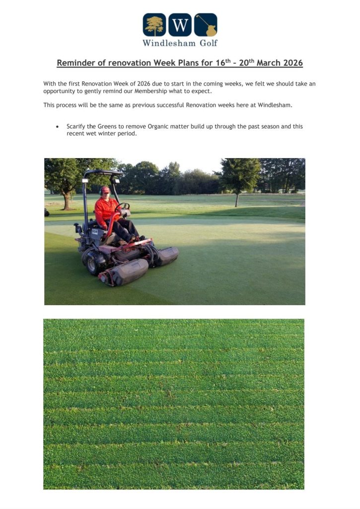 We will be doing some tasks to the Practice Greens over the next 2 days in preparation for next week to get rates of sand and spacing of holes correct etc