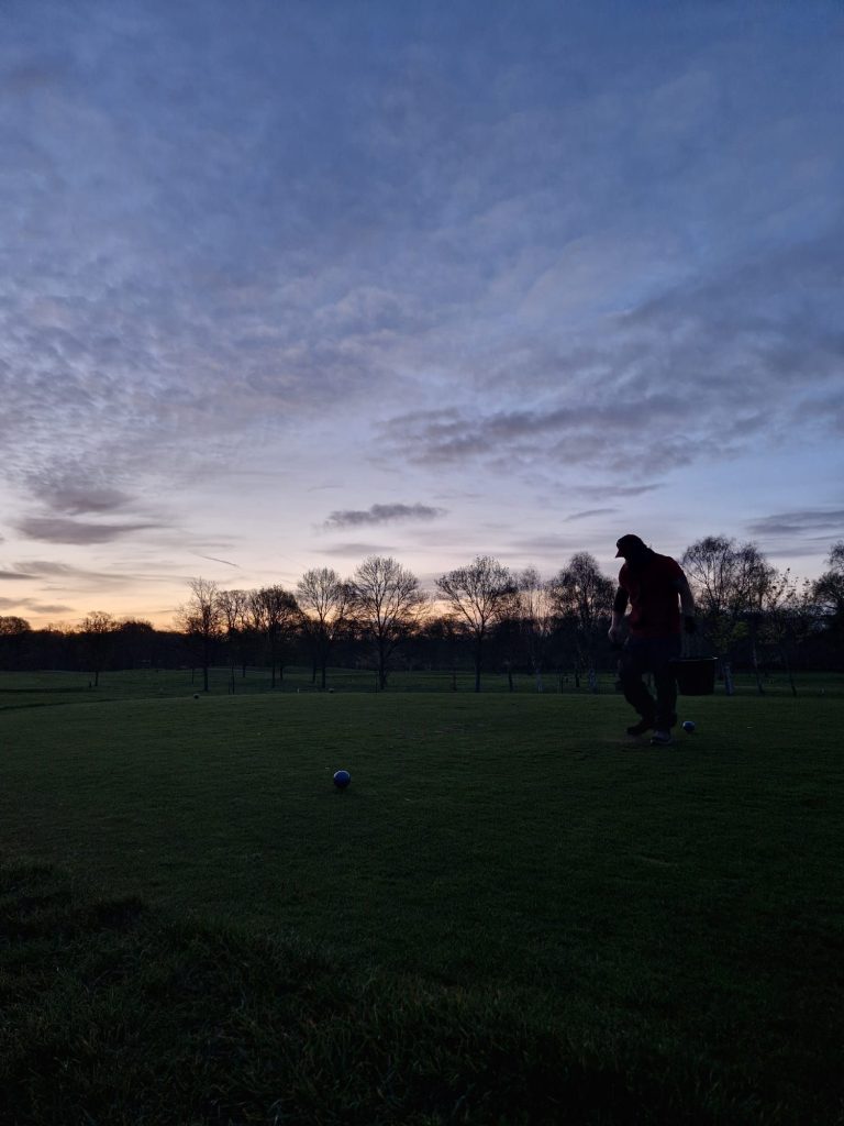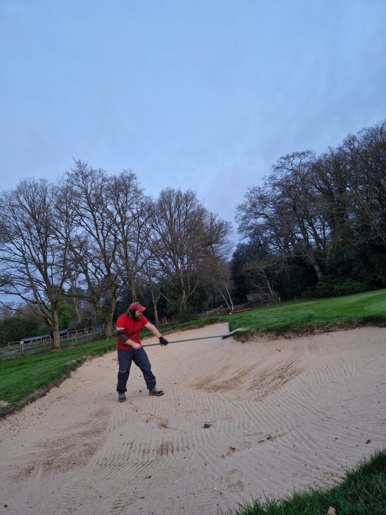 Bunkers raked and range pick after course set up.