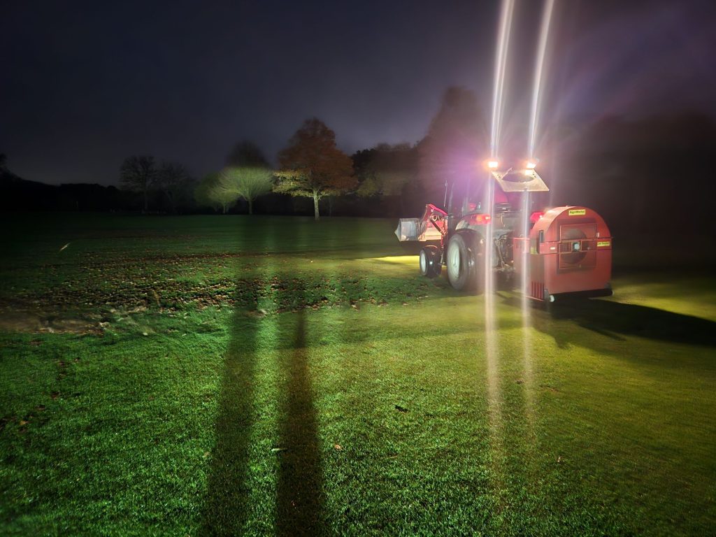 Granular fertiliser applied to Fairway's with the tractor, plus around collars with push spreader.