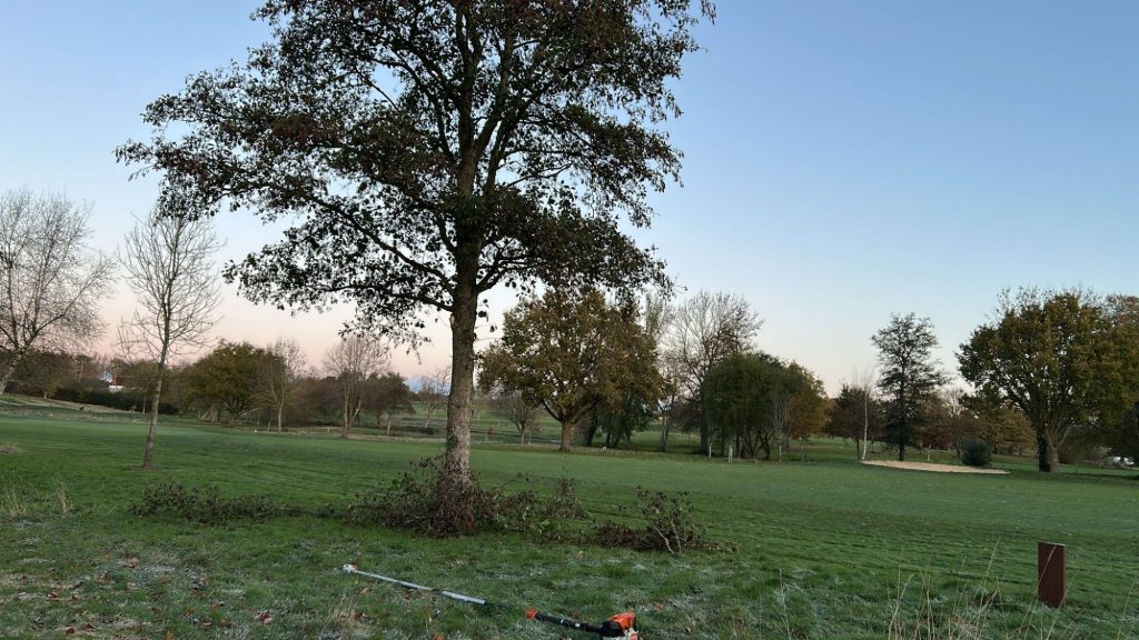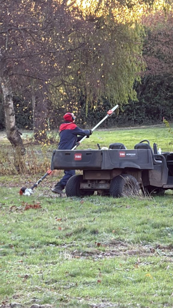 Nice dry morning to get some mowing done.... Drying out nicely 👌 Frosts coming in this week so may be our only chance before play.