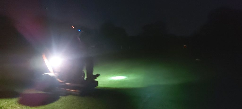 Daily setup greens dew removal and water removal on greens where needed plus holes trimmed,