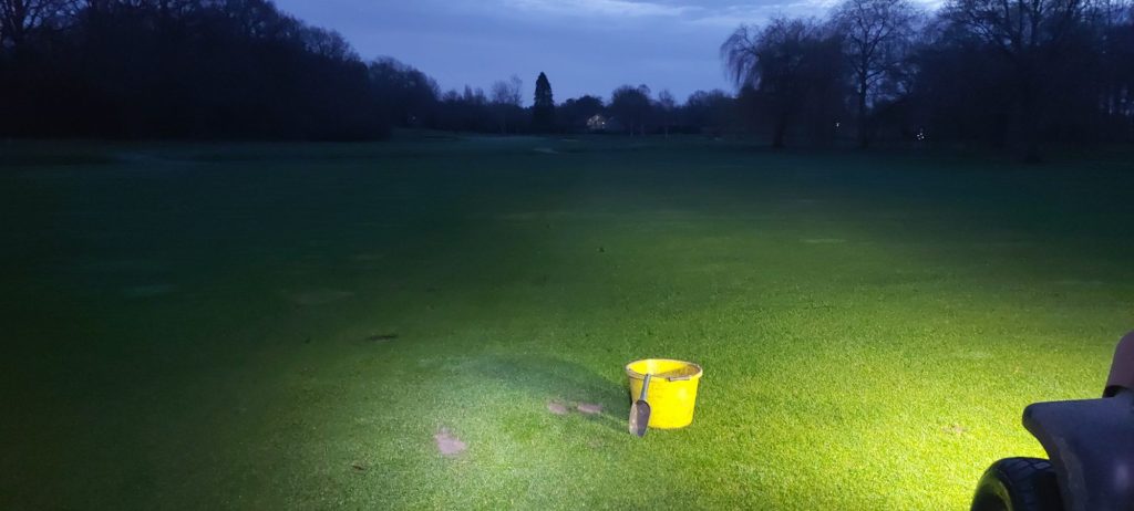 18th rhs bunker prep for turfing tomorrow and irrigation improves started to the the same area,