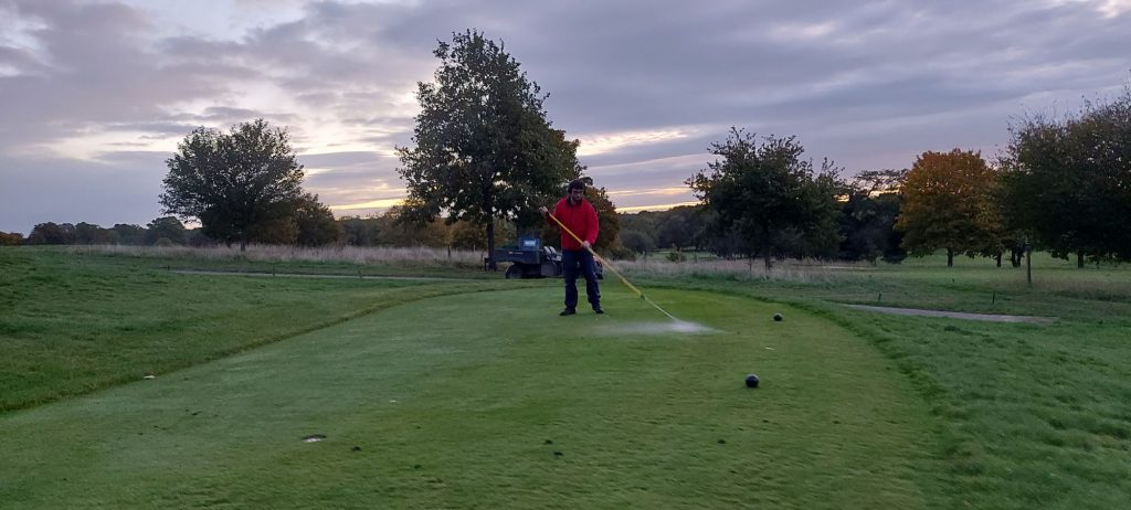 Tee's Sprayed with Wetting Agent..... seems strange but no rain the last few weeks after a wet start to September.