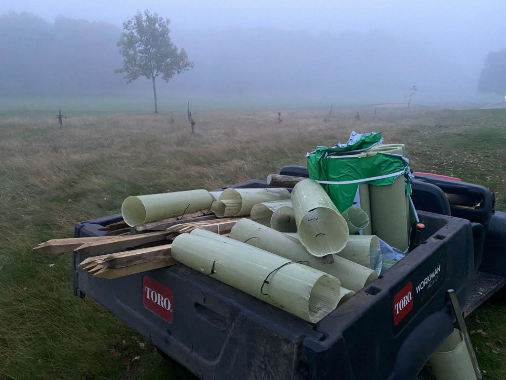 Self seeding Tree's within all areas having guards and stakes on them before the Long Rough gets cut & collected.