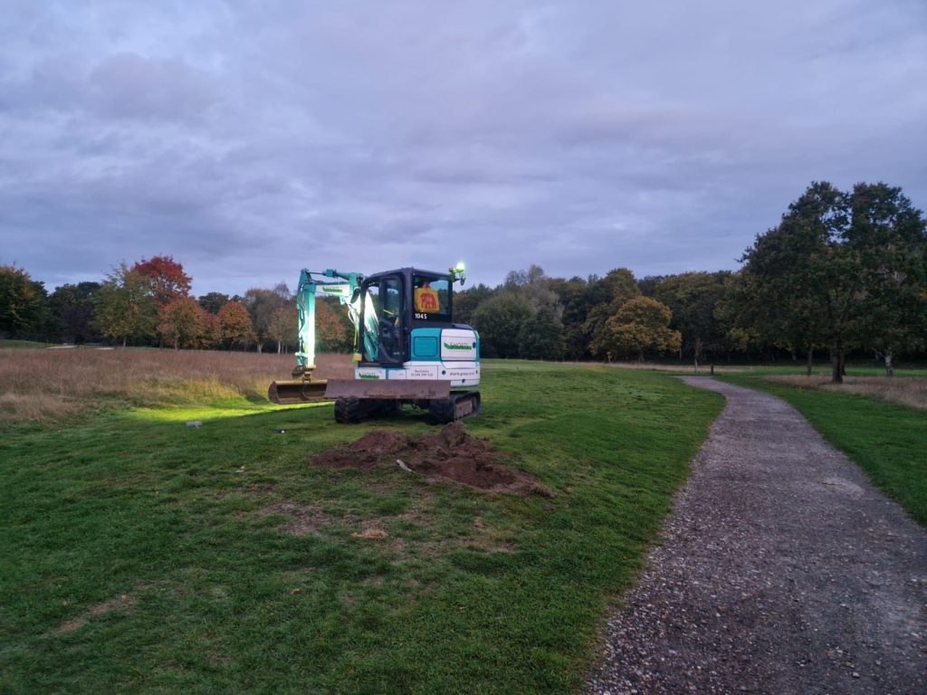 Whichever hole the machinery is working on is closed, proceed to next hole for play.
