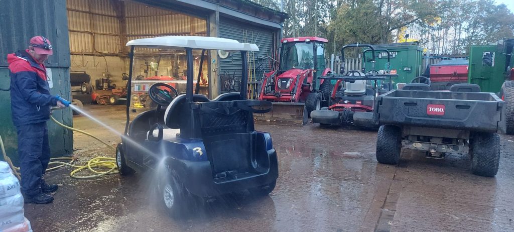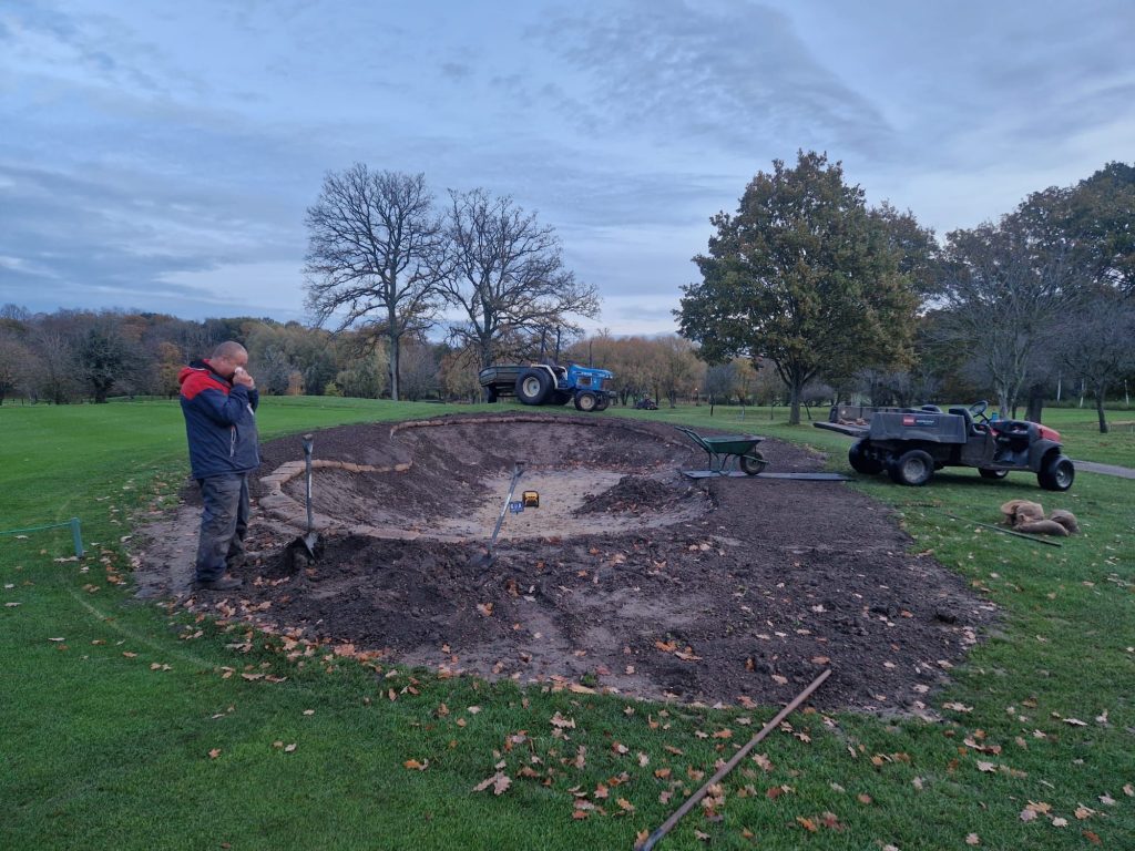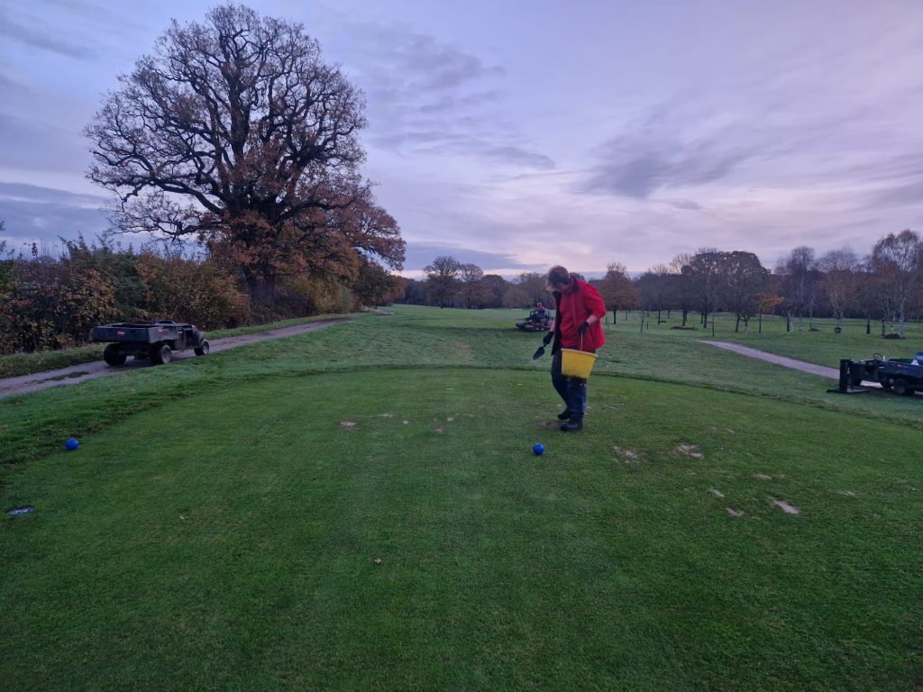 Fertiliser around the Bunkers to guve them some wake up juice to fill in the Summer damage still kicking around.