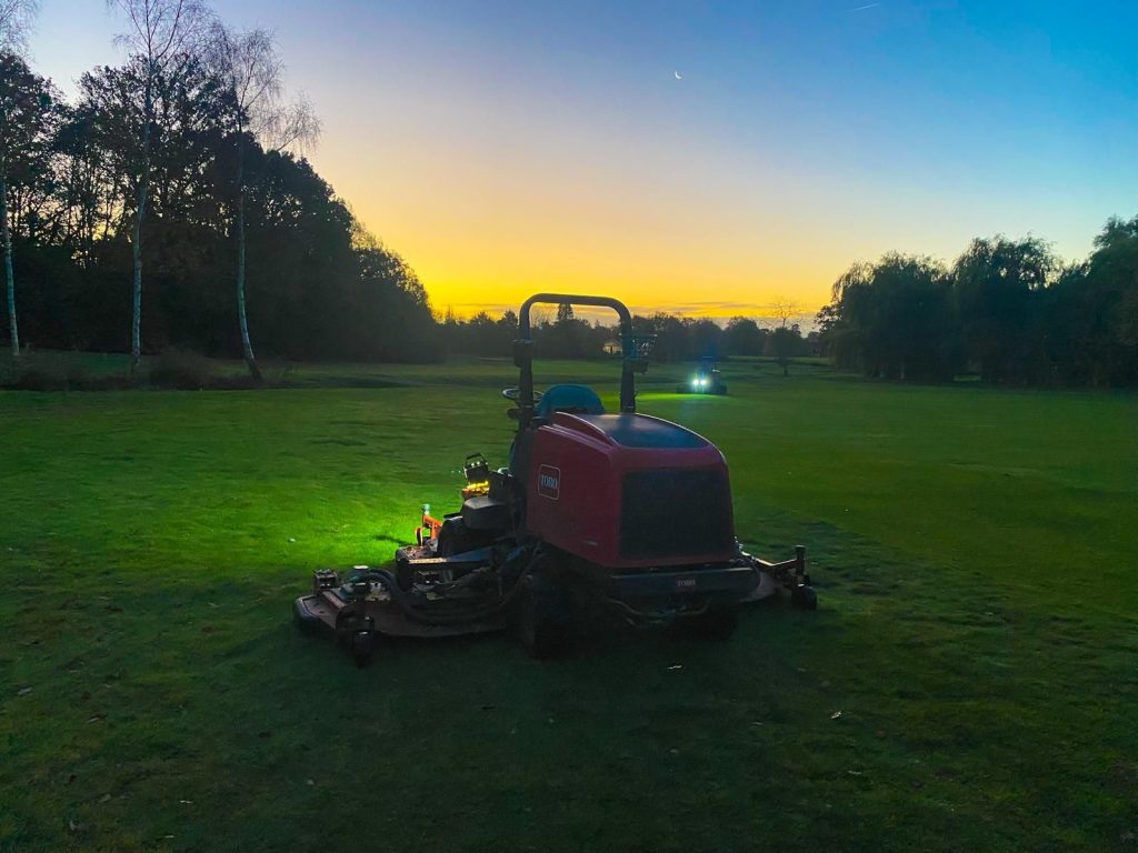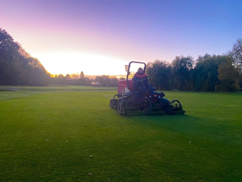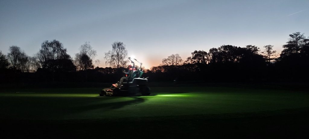 Nice dry morning to get some mowing done.... Drying out nicely ๐ Frosts coming in this week so may be our only chance before play.