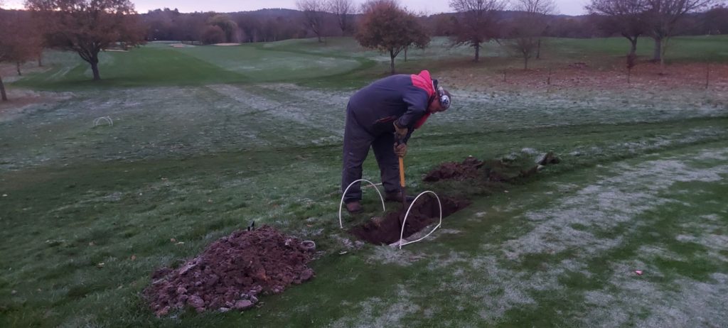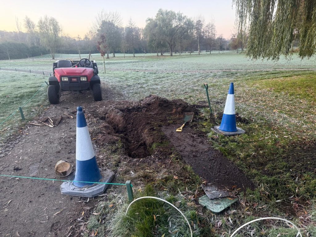 Irrigation leak on 14th Investigated before system drained down to hibernate for the Winter.