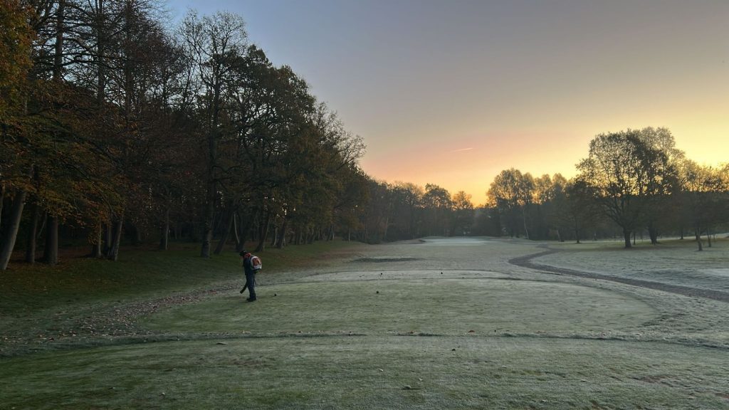 Nice dry morning to get some mowing done.... Drying out nicely 👌 Frosts coming in this week so may be our only chance before play.