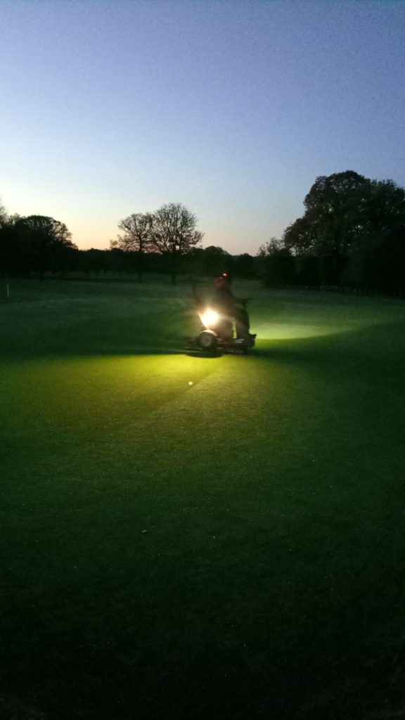 Starting Greens getting set up and blowing leafs away and holes trimmed