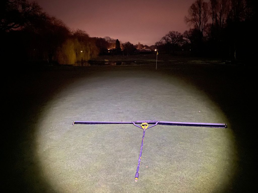 Green's still frozen a few cm down. This stops the greens from draining and keeps the area above wet, which with traffic on them trashes the putting surfaces and shears the root system. This solid layer is moving lower and lower, so 🤞 gone soon!