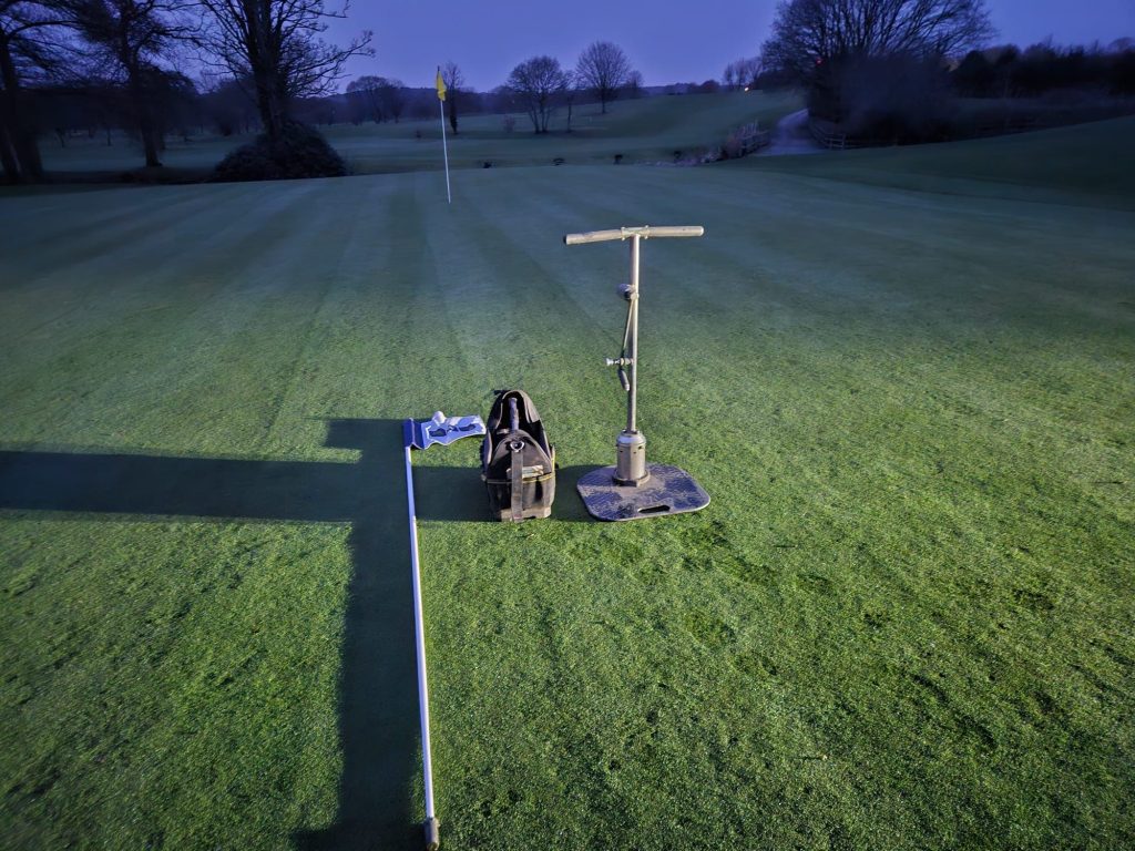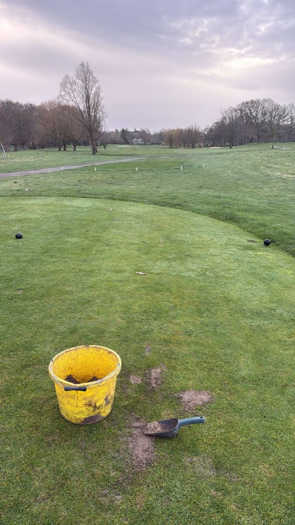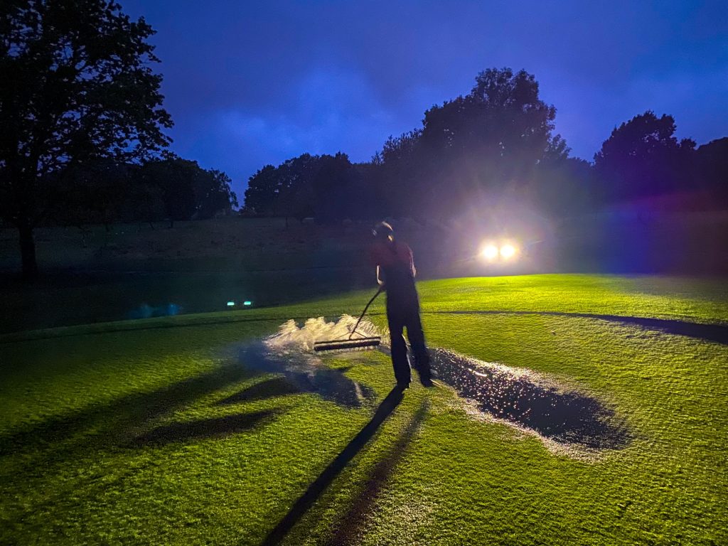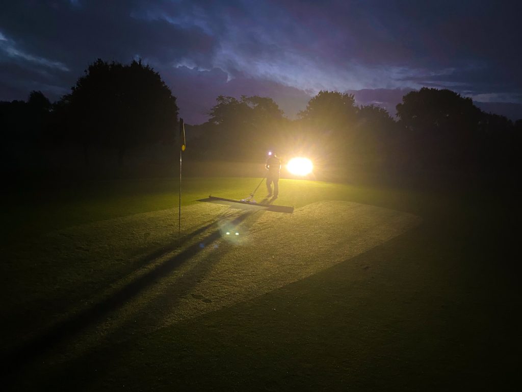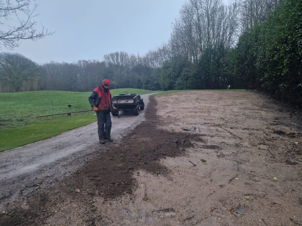 18th rhs bunker prep for turfing tomorrow and irrigation improves started to the the same area,