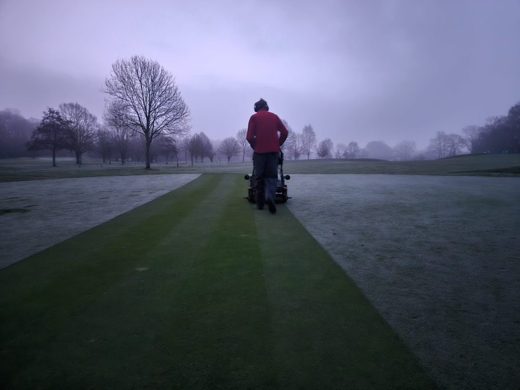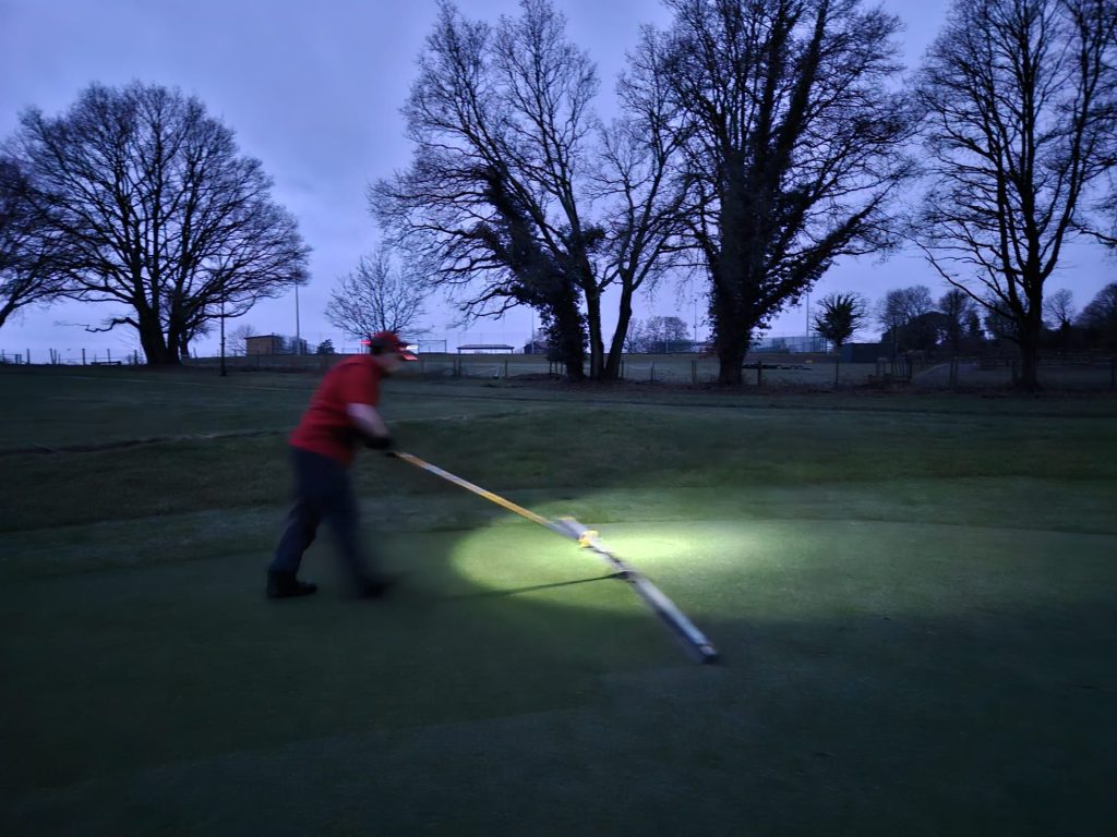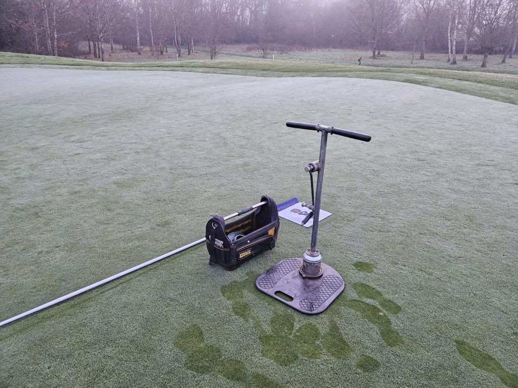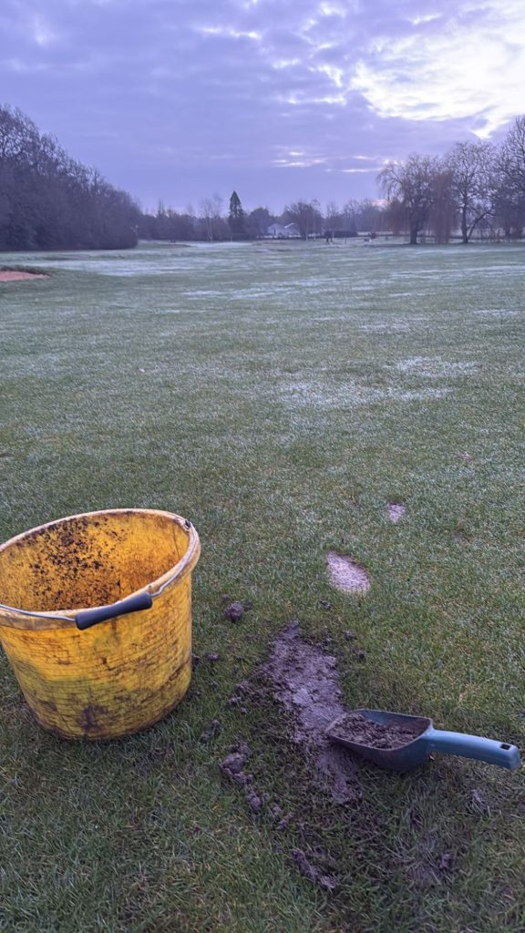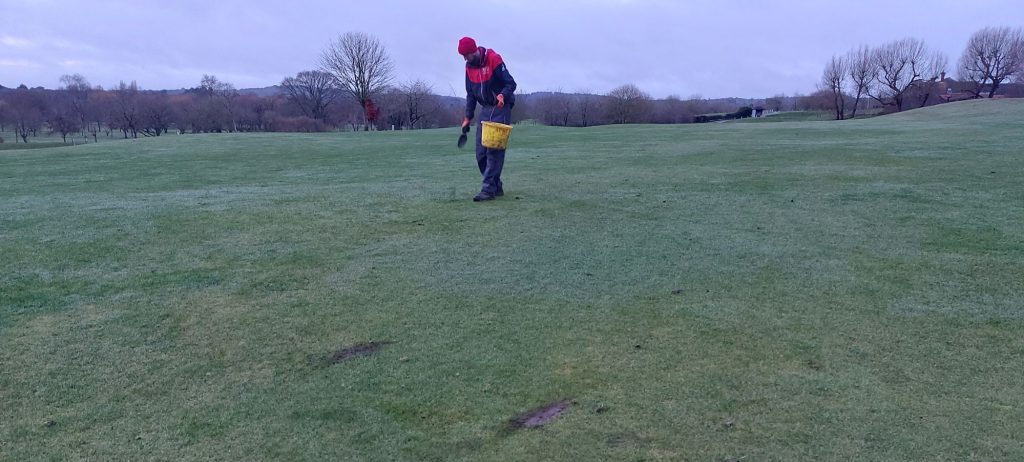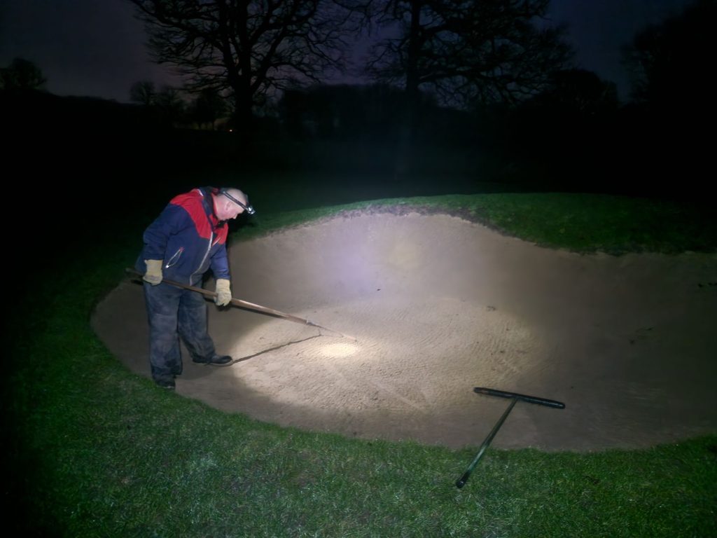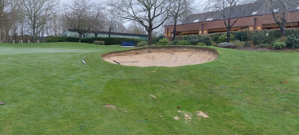 Repair work to the 8th Greenside Bunker. This isn't helped by people walking in on the high side 🙄