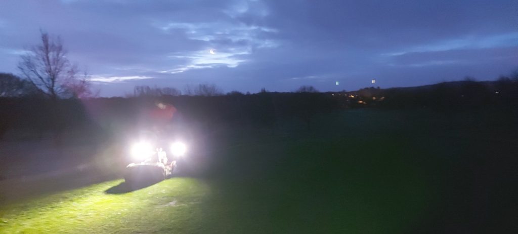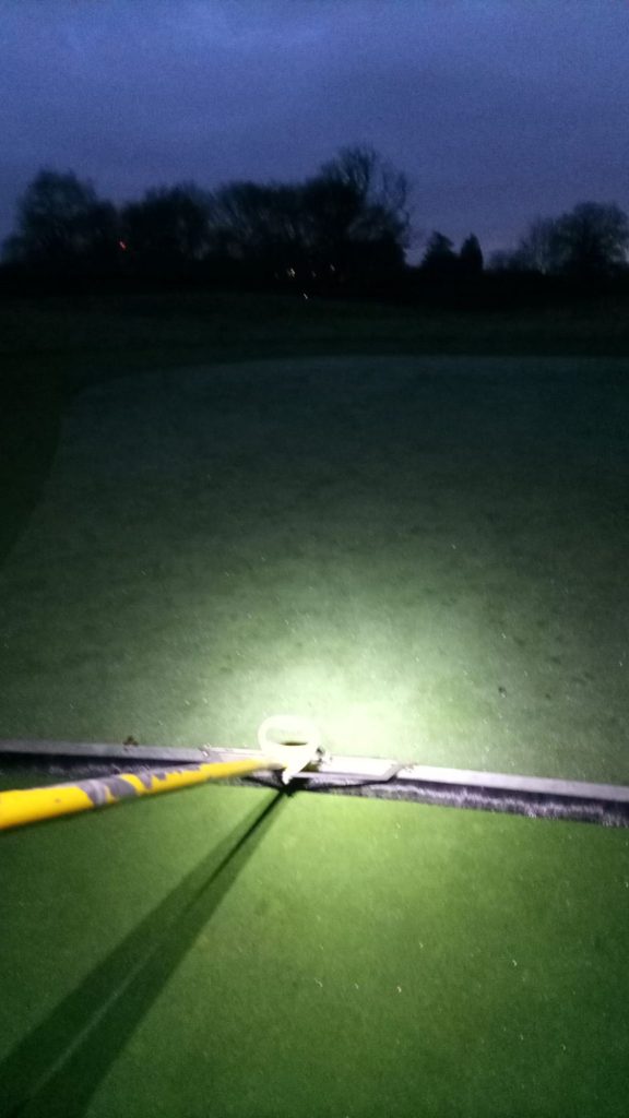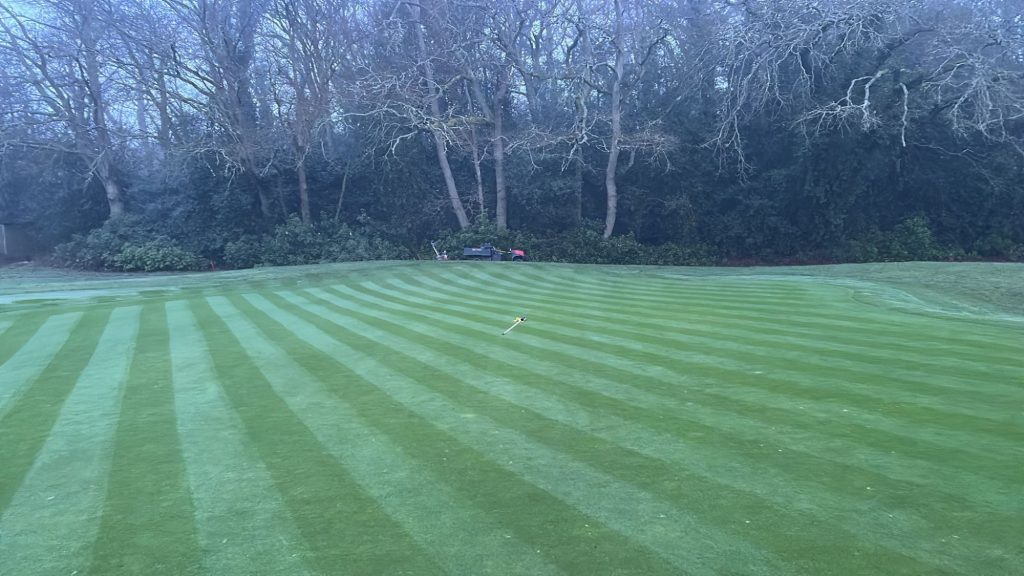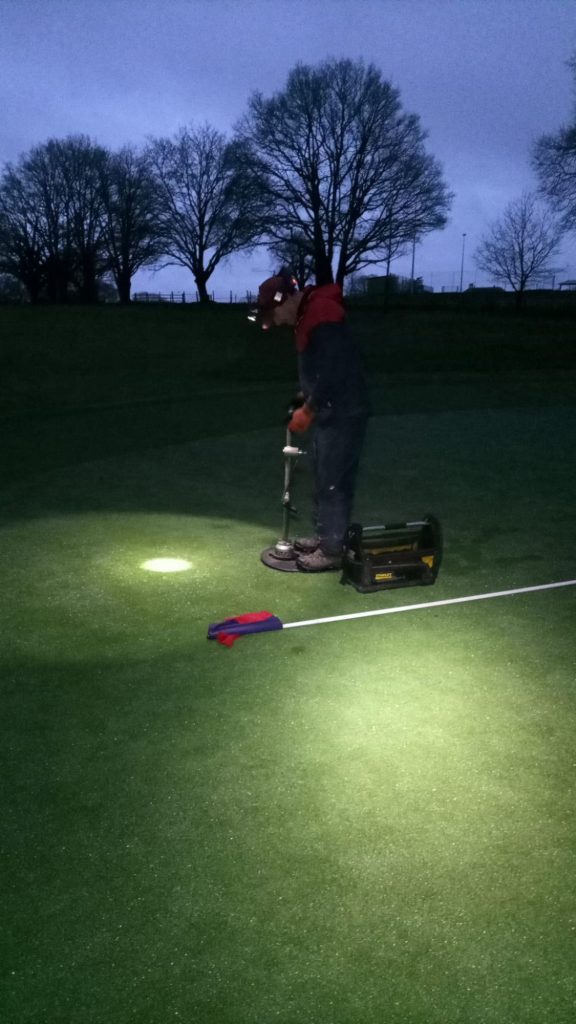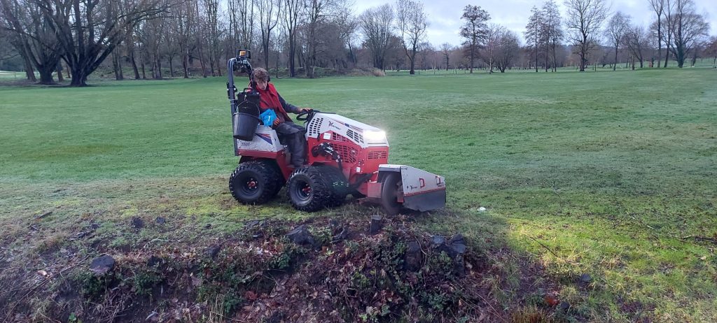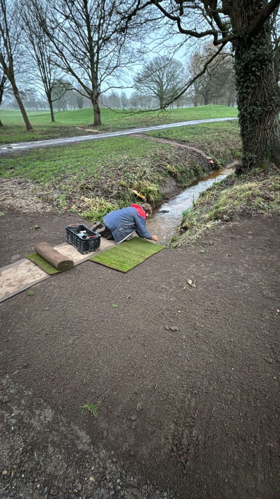 Left 18 Green side bunker turfing completed remaining turf being put to good use being used on the new improved 18th tee bridge