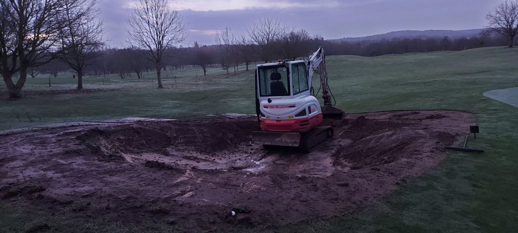 18th Green side bunker getting finished of with materials then after turfing will commence