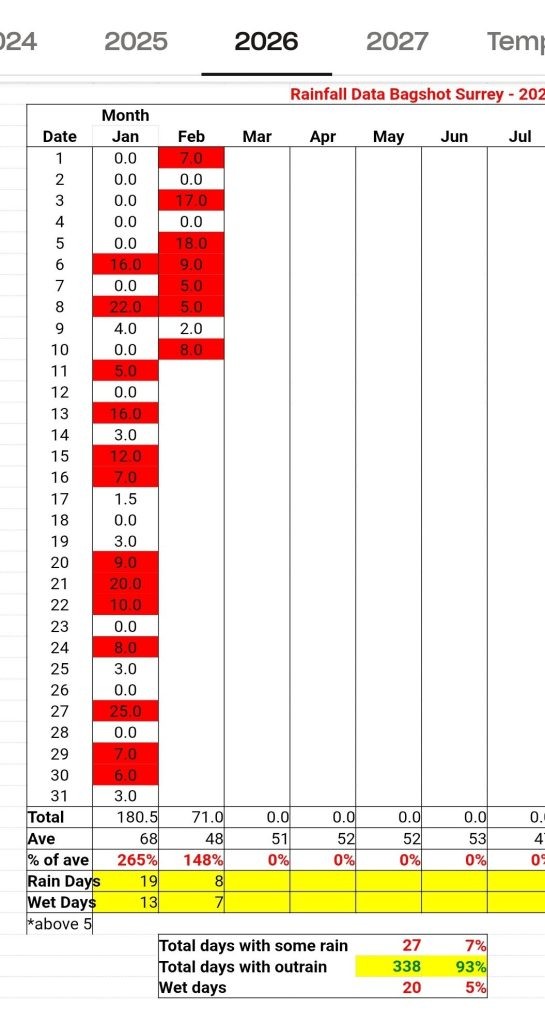 Wettest start to February for 10+ years.... with only 2 days out of 10 with no rain. Relentless 😪 For all those wondering when trolleys will be back in use, im sure that answers and justifys that.... not anytime soon. 148% on the months average within a 3rd of the month!