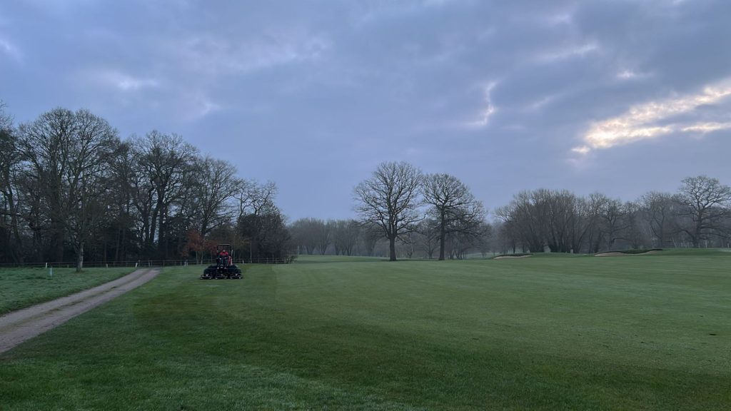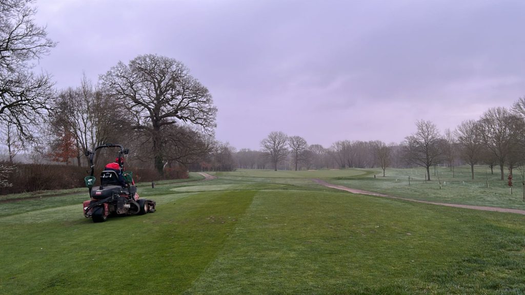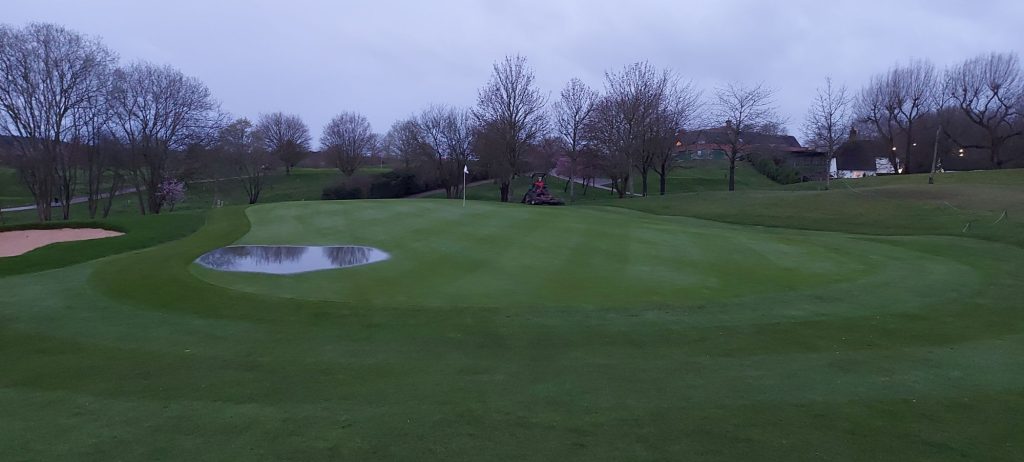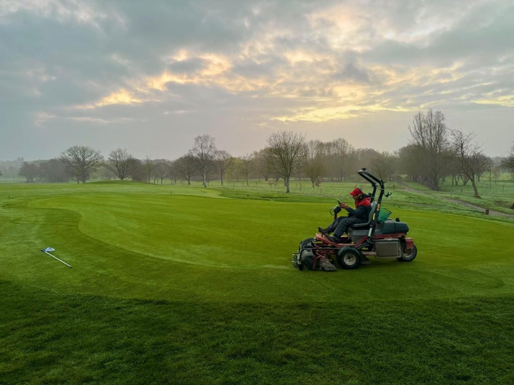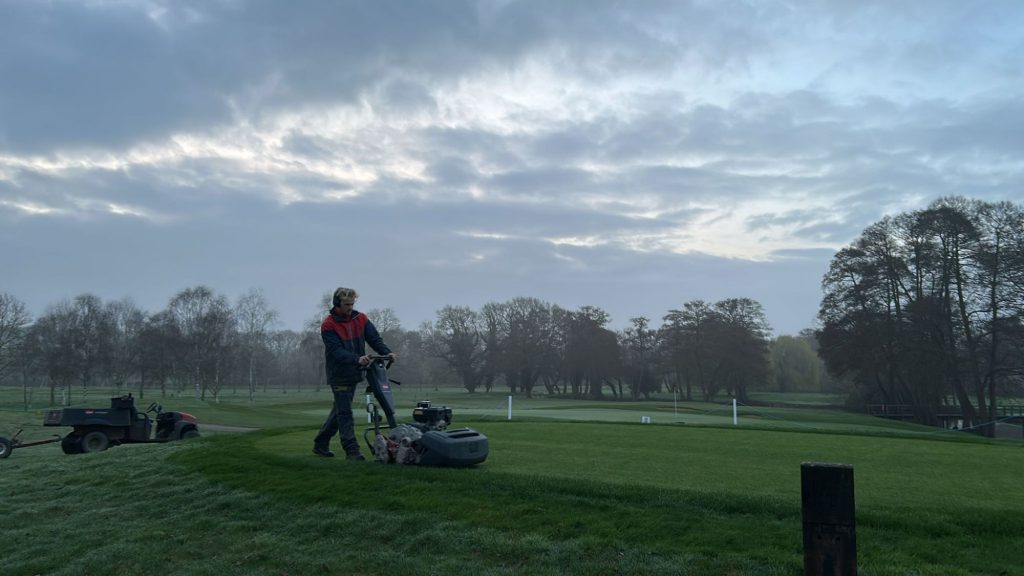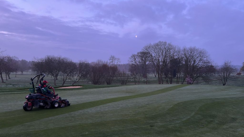 Daily setup with greens cut and holes trimmed,