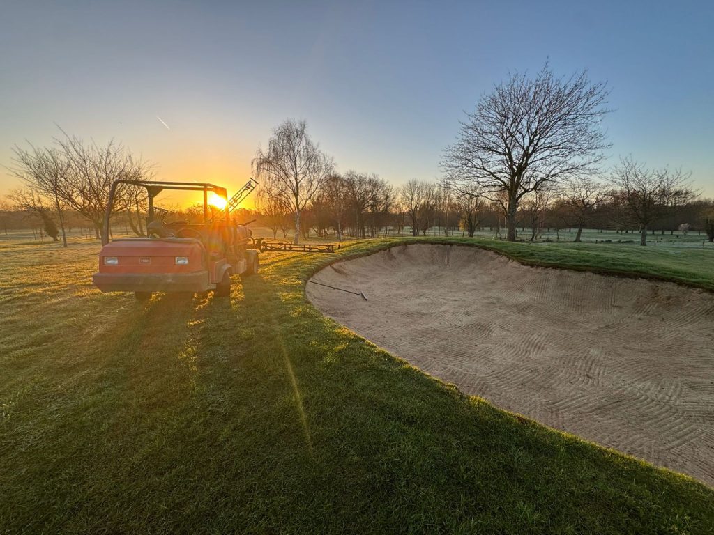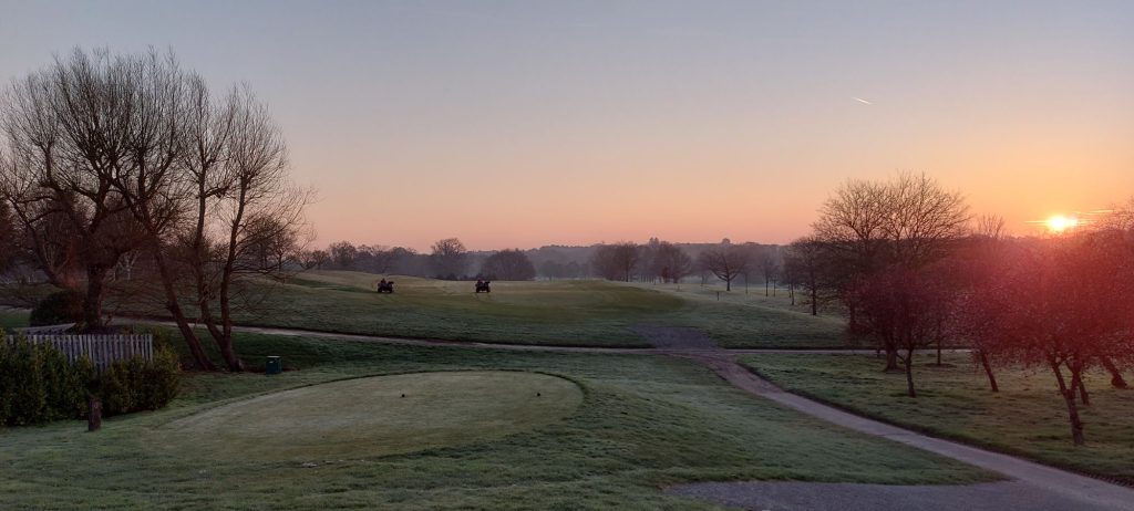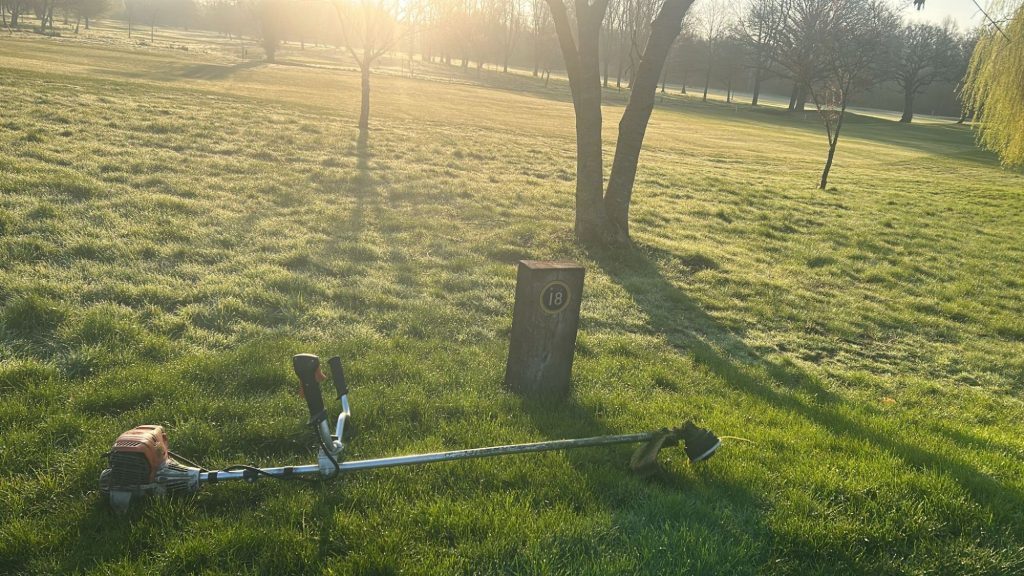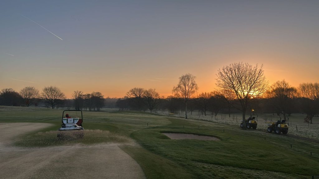 Application of Dew Suppressant in and around the Frost. This is being applied to help with disease prevention, but also to do what it says on the bottle.... suppress the Dew. This will be handy going into next week's Course Maintenance so we can get some work done to the greens earlier in the morning with the leaf moisture reduced. This was planned for yesterday but with the frost delayed till today.... π no delaying now.