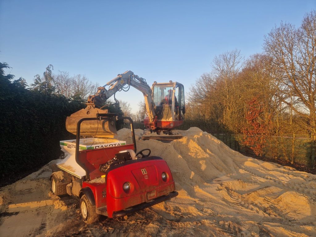 When bodies are available..... Deep tine over the top of the sand to 8" and a 4" tine over that, to get the sand to various levels.