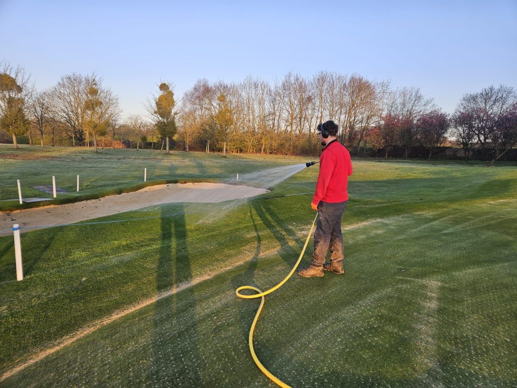 Bunkers sprayed with some Fe, N, Mg, PGR & Wetter to knock back some of the Moss generated through a super wet Winter.