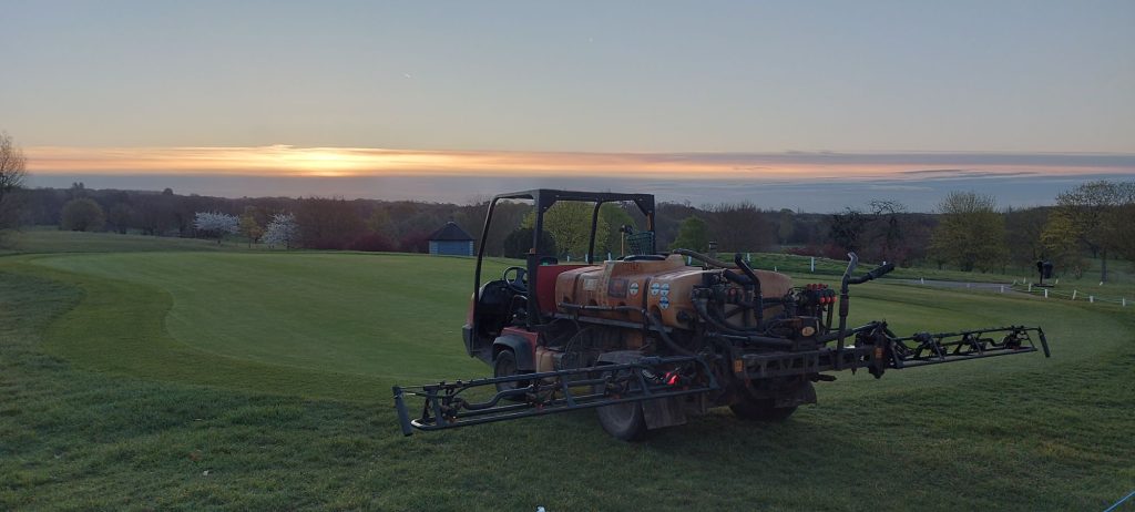 Fairway's Sprayed with some Fe, N, Mg amd Wetter..... to keep upsetting the Moss generated after a super damp Winter.