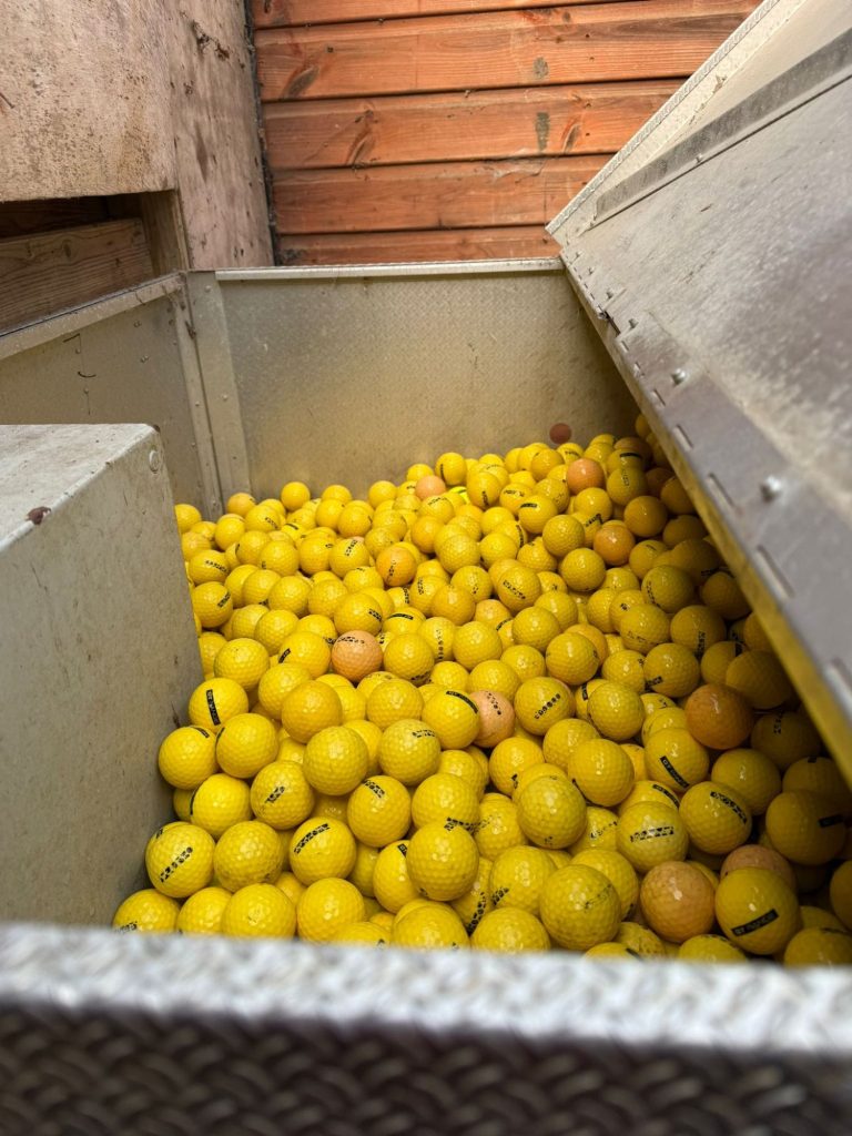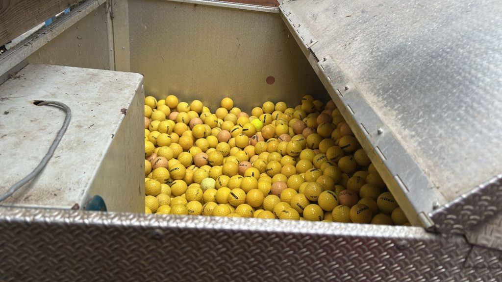 Bunkers raked and range pick after course set up.